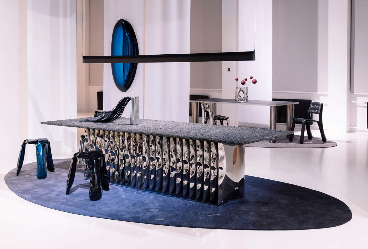 Steel and stone in sculptural tension