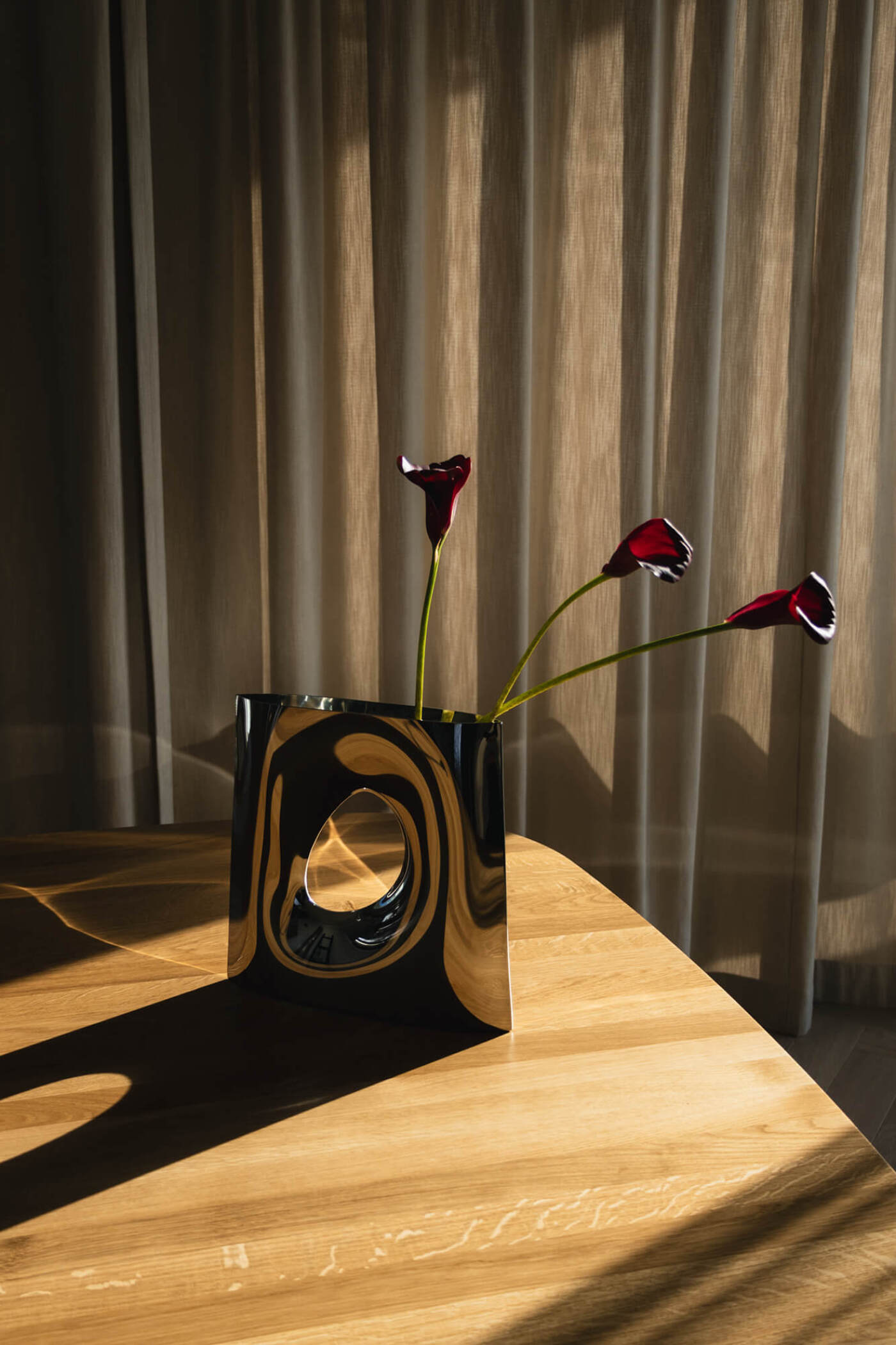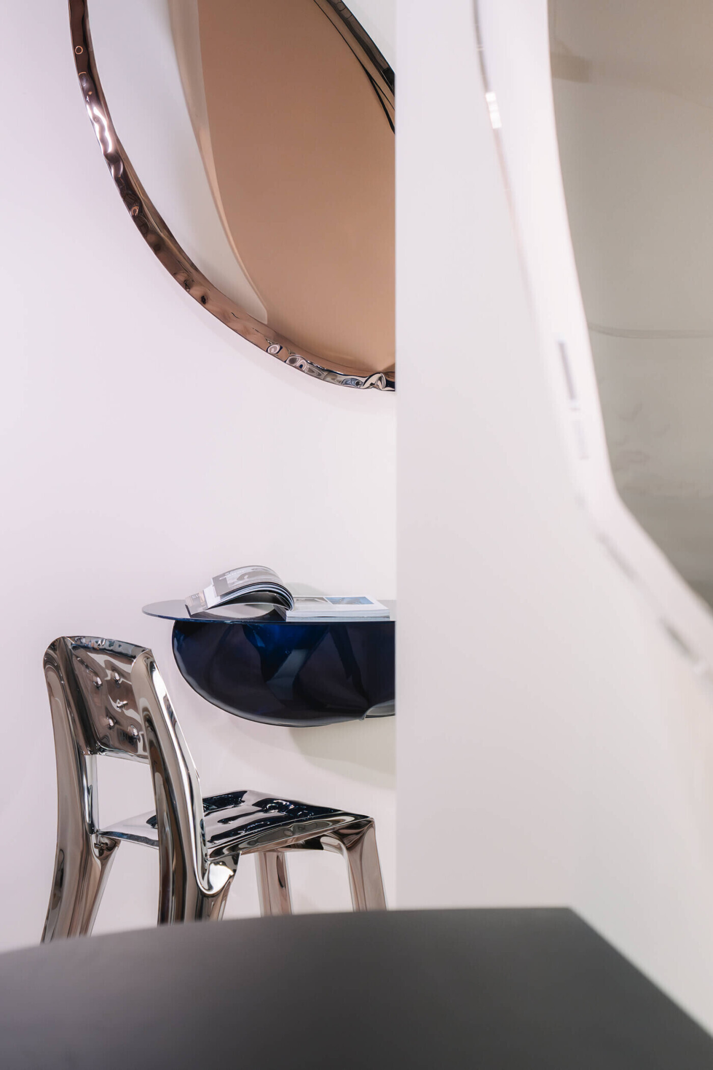 Shades of black and bronze will also be expressed through classic seating pieces — the iconic Plopp stool, the world’s lightest aluminium chair Ultraleggera, and the increasingly recognised Chippensteel 0.5, recently featured in a fragrance campaign by Billie Eilish.