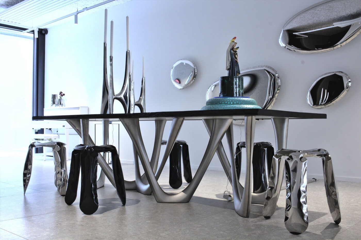 Oskar Zięta creates objects of desire. He sculpts with air, and on the steel surfaces, he reflects emotions, sensations, and contexts. Zięta's works duplicate spaces, multiply their meanings, add depth, and reveal their yet undiscovered images. His fascination with materials means that today, as an architect, engineer, process designer, and artist, he creates new potentials at the intersection of technology and art. This summer, the meeting of contexts will take place at the Frock Gallery.