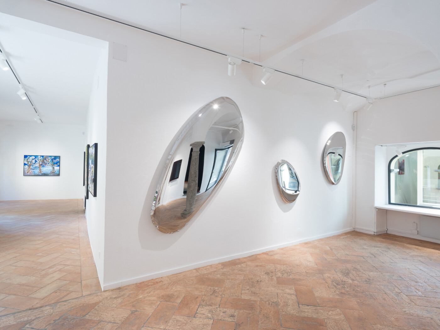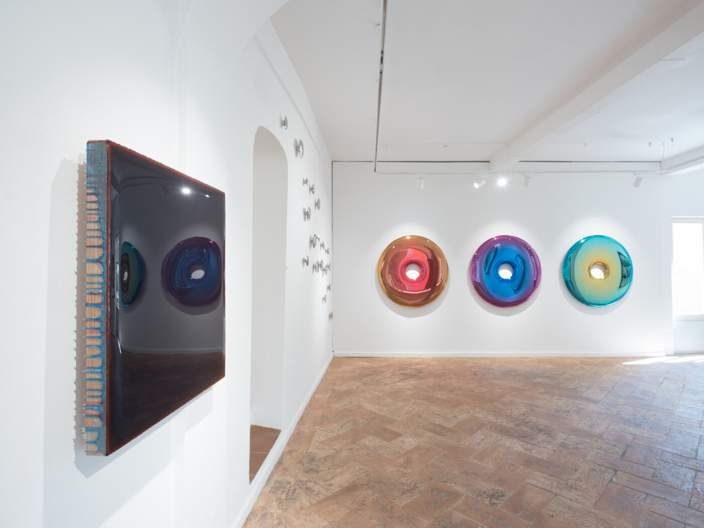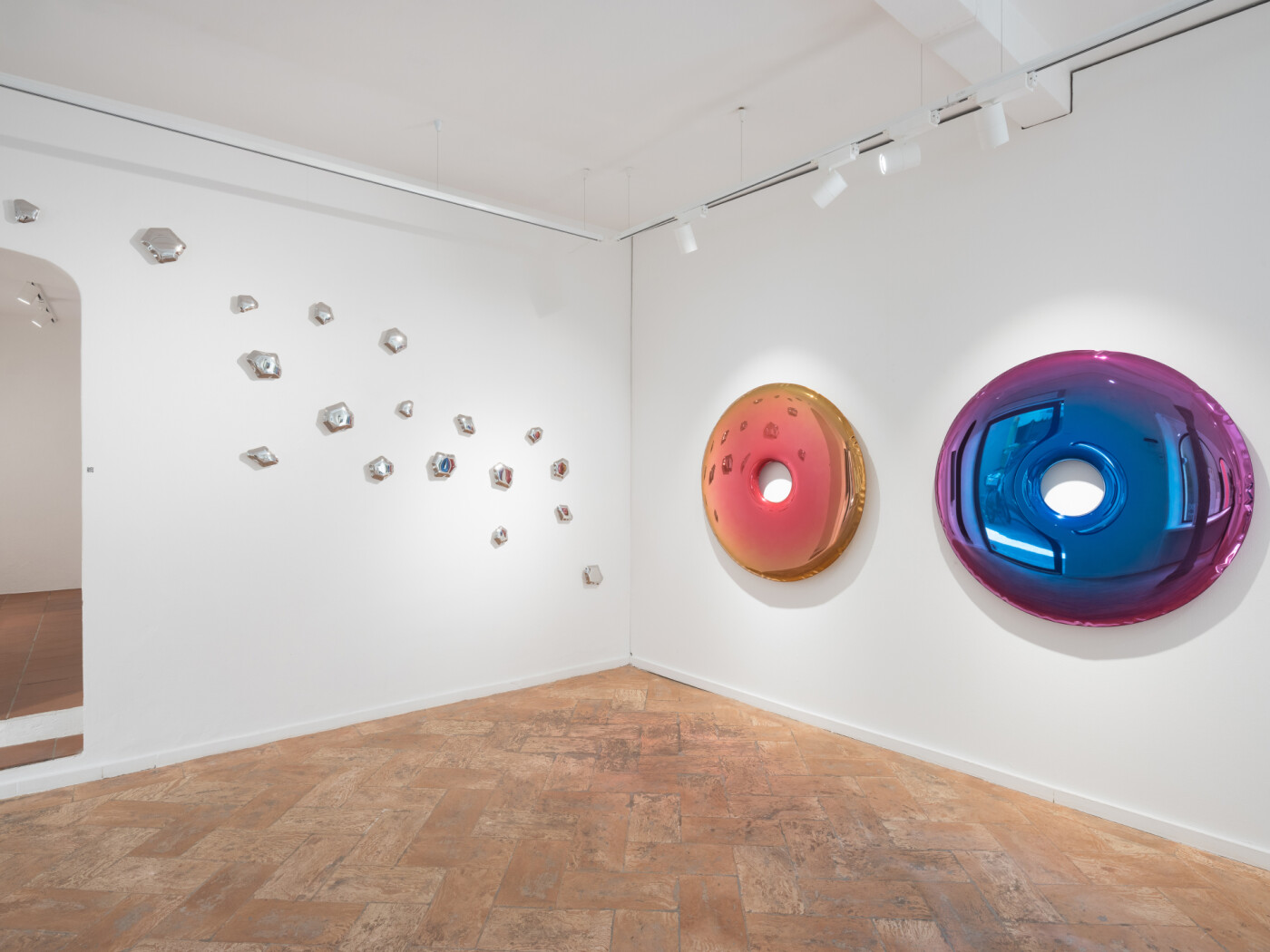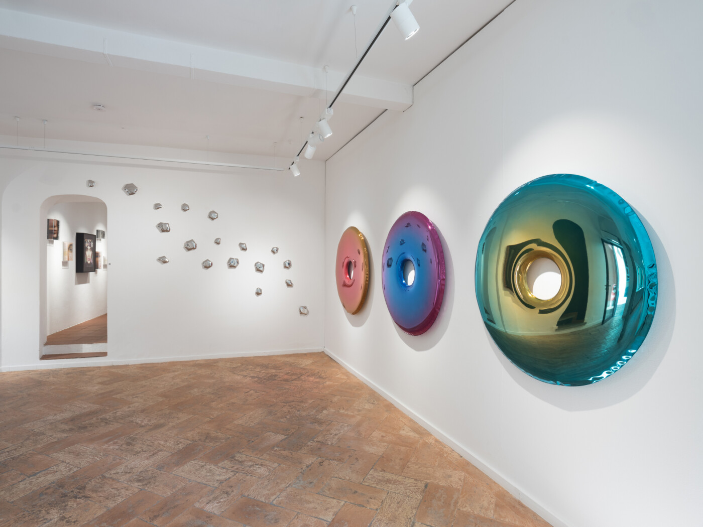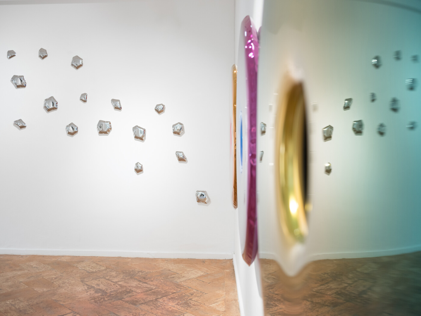 The exhibition treats distortions in the context of creative momentum. It presents works by four artists who explore macroscopic transformations of material and microscopic play of pigments. Zięta's objects take these considerations literally, evoking light-reflecting stories about material research, colorization and deformation.