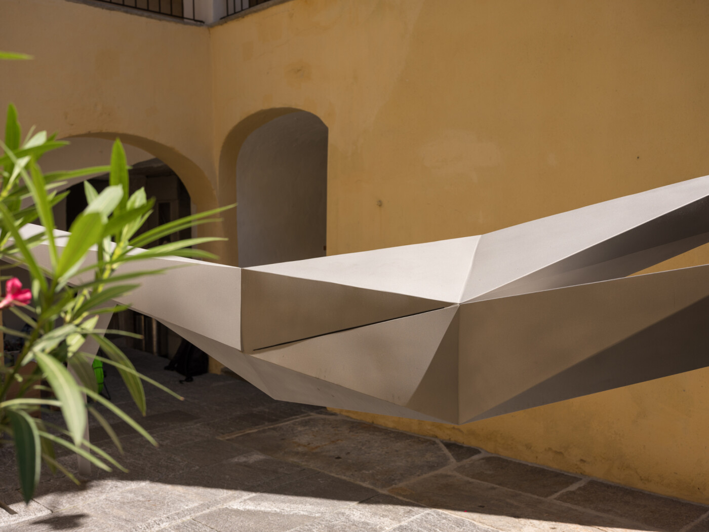 This summer at the Sacchetti Gallery in southern Switzerland, Oskar Zięta's metal objects were part of the theme of the exhibition "Distortions". The artistic meeting at the heart of the CCAA juxtaposed the steel FiDU deformations with the works of Dirk Salz, Gilles Van Schuylenbergh, and Andrea Valsecchi.
