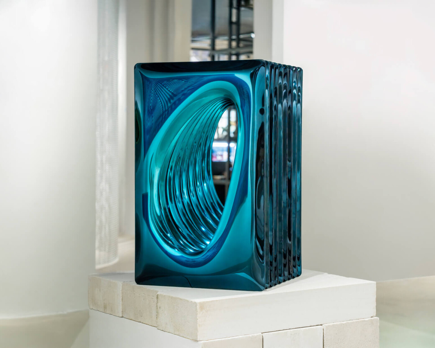 "Blown Away" offers an immersive journey into Oskar Zięta's innovative approach to form and material. Central to the exhibition is his patented FiDU technology (from the German Freie Innendruck Umformung, which translates into English as “free inner pressure forming.”), a revolutionary process that involves inflating metal sheets to create robust yet delicate structures. Through this technique, Zięta transforms ordinary materials into fluid, captivating sculptures and functional art pieces that challenge conventional notions of space, structure, and utility. The result is a seamless blend of industrial precision and organic elegance.