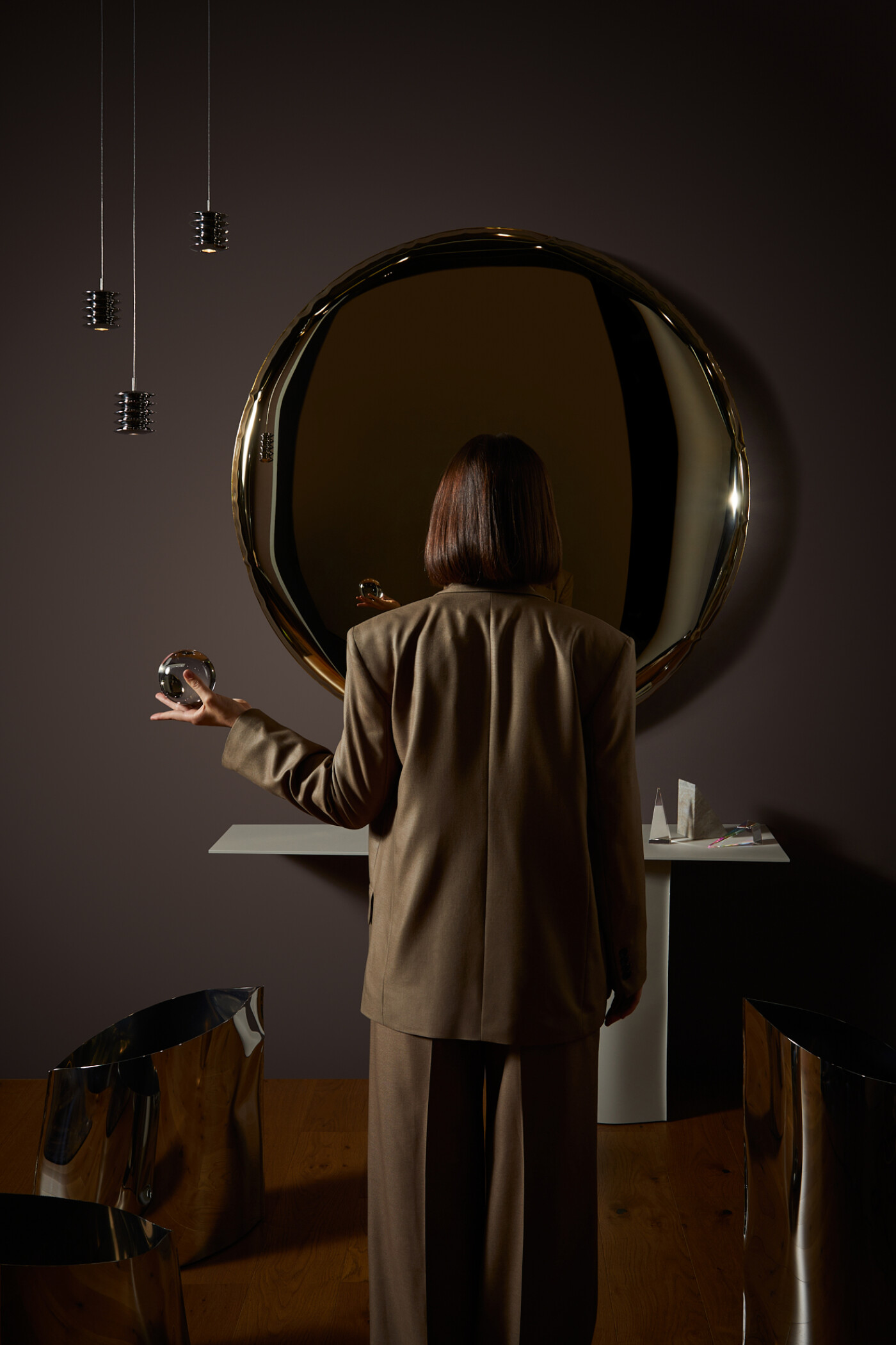 Our philosophy is reflected in metal surfaces that are never exactly the same. Seemingly soft, but metal. Seemingly full, but empty inside. Sculpture-mirrors, mirror-sculptures tables, seatings and accessories are the result of the FiDU proprietary production process. They are a mirror of research into the physical properties of the material, which, so to speak, determines their final, unique form.
