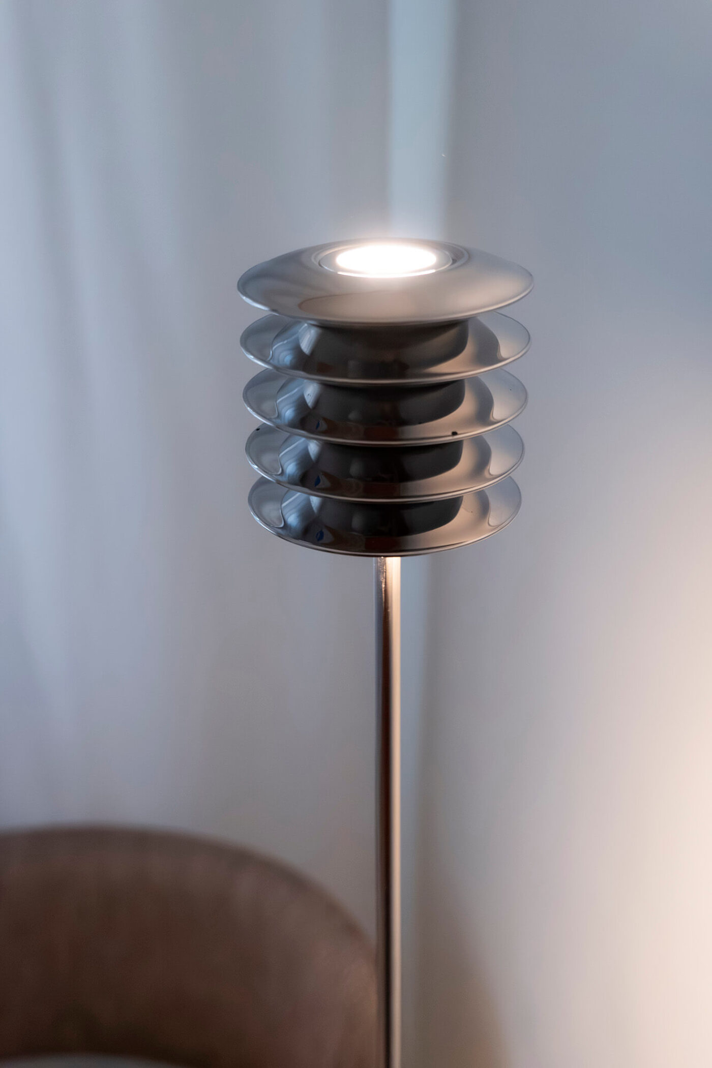 Harmonica Floor fits perfectly both as a single, sculptural accent within a space and in combination with other lamps from the Harmonica collection. The lamp’s frame is available in the classic inox finish, with customised versions also available on special order.